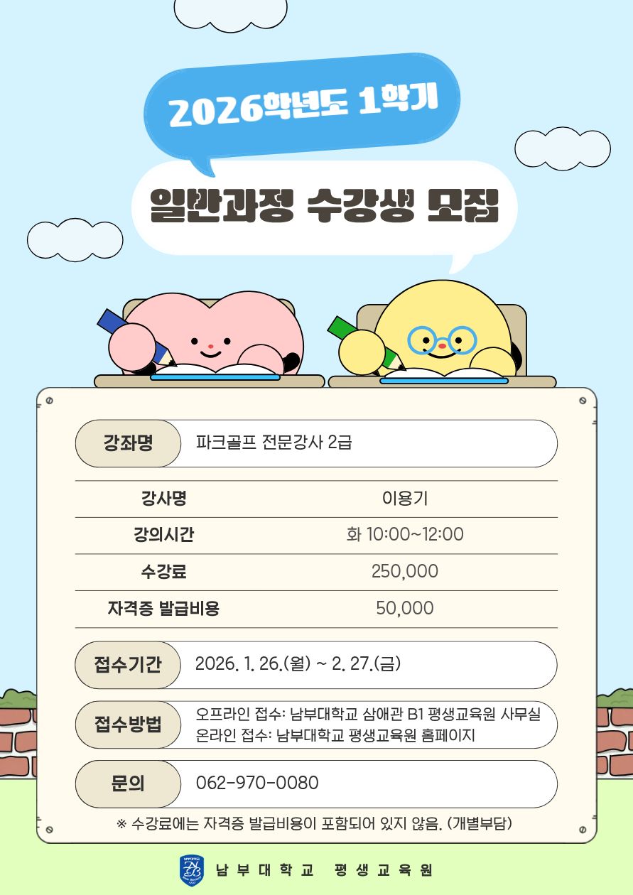 [남부대학교 평생교육원] 2026학년도 1학기 수강생 모집 안내